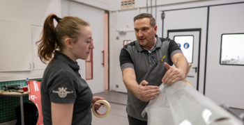 - Trainingslocaties met moderne werkplaatsen, spuitcabines, lakken en moderne (elektrische) voertuigen.