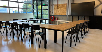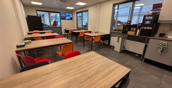 De kantine is de plek om even bij te praten en te ontspannen tussen de lessen door.